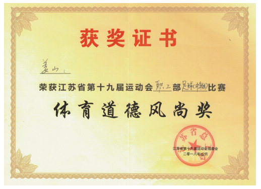 熱烈祝賀連云港市天緣食品有限公司配送中心駕駛員姜山同志榮獲“江蘇省第十九屆運(yùn)動(dòng)會(huì)職工部中年組足球比賽體育道德風(fēng)尚獎(jiǎng)”。