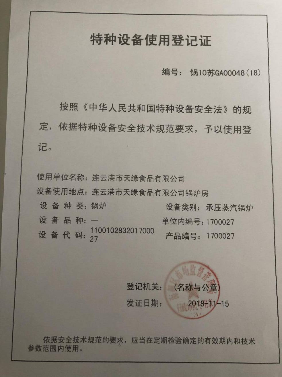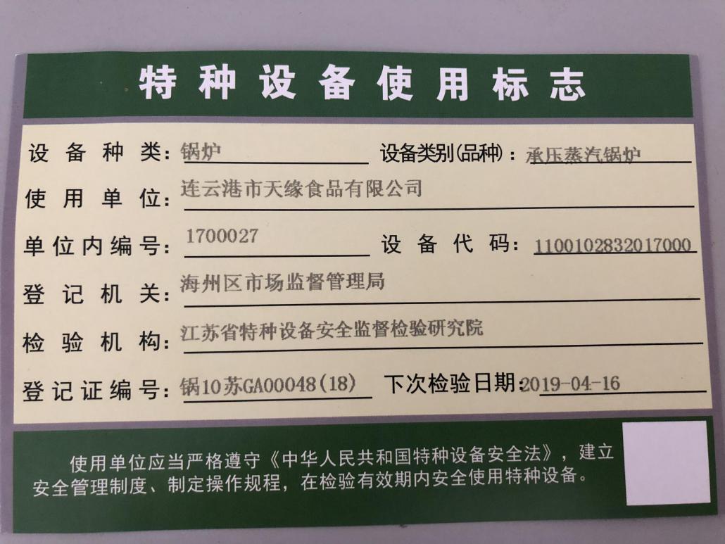 按照政府環(huán)保部門相關(guān)要求,為減少污染,消除燃煤鍋爐在運行過程中存在的安全隱患,天緣食品上半年積極聯(lián)系燃?xì)夤荆鸪济哄仩t,更換符合國家要求的燃?xì)忮仩t,同時安裝太陽能,以確保公司生產(chǎn)正常運營。下半年,根據(jù)要求,工作人員又主動到市場監(jiān)督管理局將原鍋爐使用登記證注銷,并成功辦理新鍋爐的使用登記證。
