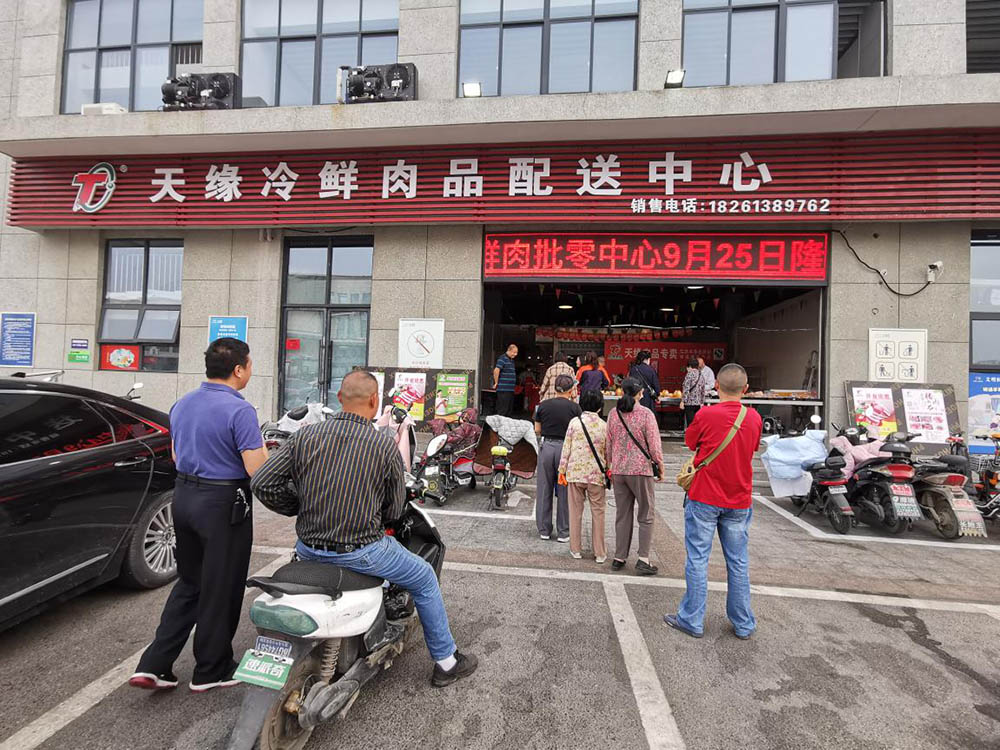 2020年9月25日,位于農(nóng)發(fā)集團(tuán)瀛洲路農(nóng)貿(mào)市場的天緣冷鮮肉批零中心正式開業(yè)。